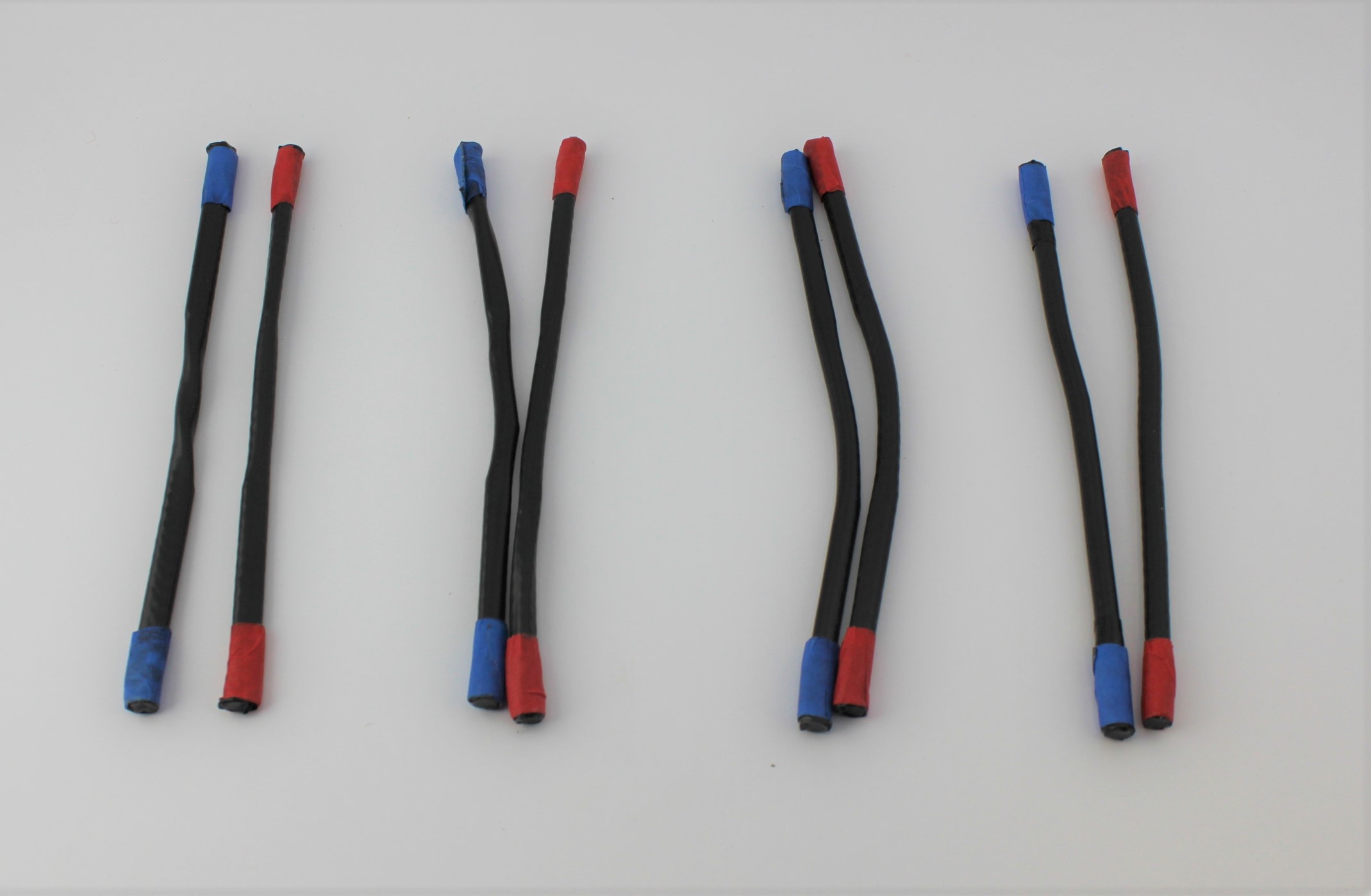 This sensorial work trains the stereognostic sense. It exercises the muscles of the hands and arms to distinguish between identical appearing wires that have a range of flexibility. The four wires in each set have different degrees of flexibility. By bending the wires with both hands, the child can match the red and blue wires that have the same degree of flexibility.