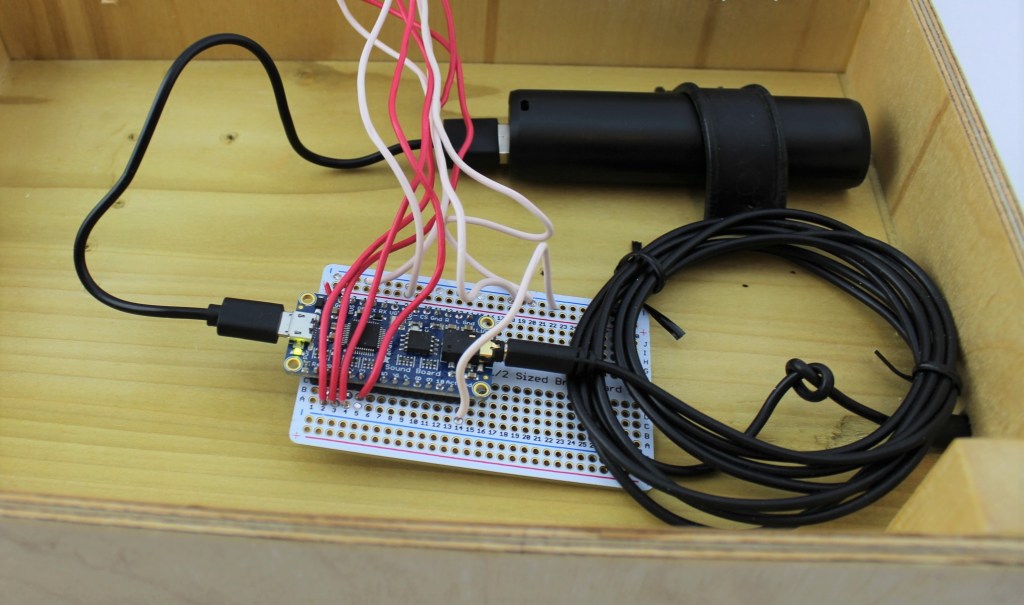 This versatile work is ultimately a sensorial work refining the child’s auditory sense. I designed it with the three species of the brood x cicada emergence in Cincinnati in mind, but the work can be reprogrammed to be used with any three sounds – bird songs, letter sounds, etc. Imagine a museum display where you press a button and a sound plays. That is what happens with the top three buttons below the photos of the three different species of cicadas (or birds or letters). The fourth button below plays one of those sounds on random and the child must then match it to the corresponding sound above. The control of error is listening to whether the sounds match. This has been my most ambitious work. I had to teach myself electronics and soldering, but the best part of that is that I’m already dreaming up works about electronics for the cultural shelf. Our local NPR affiliate did a story on this work here.
